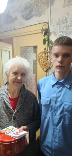 В канун праздника Дня Победы педагог социальный Кругляк Г.В., председатель первичной профсоюзной организации учащихся Драгунов В. учащиеся групп, закреплённых за ветеранами колледжа  посетили Бояркина Б.М., Вишняка В.И., Киселёву Н.И., Лавриненко И.К.. Мурашко Д.С., Окрут В.С., Оралова Б.В.,  Семенова Л.Е., которым в годы Великой Отечественной войны было от 1 года до 7 лет, тепло пообщались с ними, вручили подарки,  пожелали крепкого здоровья, долголетия и мирного неба над головой.