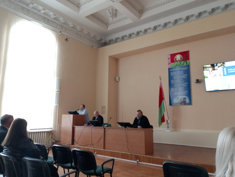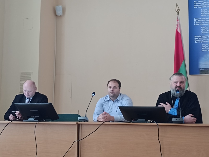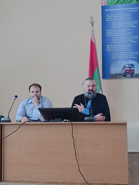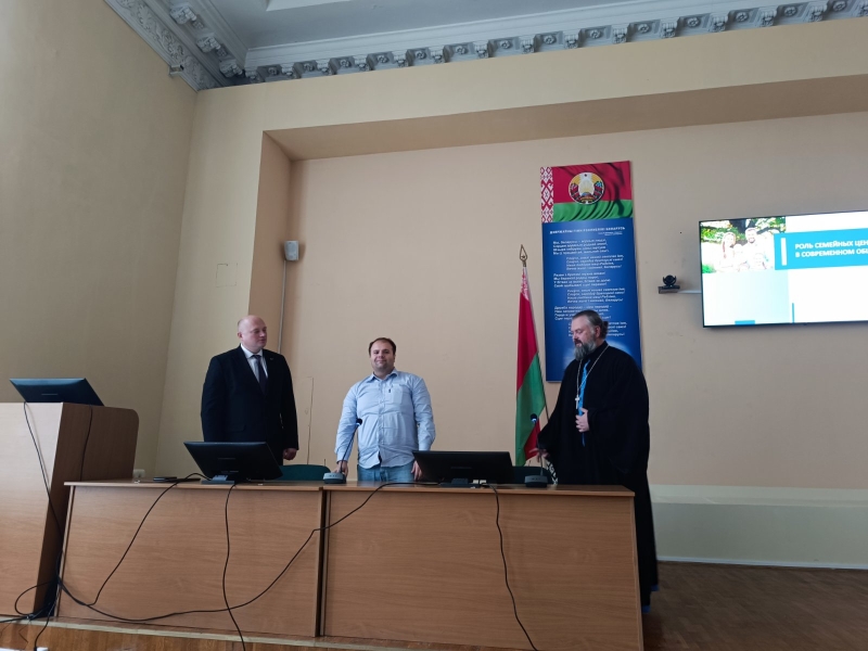 клирик Свято-Петро-Павловского кафедрального собора, председатель отдела по молодежному служению Гомельской епархии, иерей Дмитрий Мельников «Православие и его роль в воспитании семейных ценностей»; заместитель директора по воспитательной работе Козороз Игорь Николаевич «Роль семейных ценностей в современном обществе». В актовом зале собрались работники колледжа, с интересом прослушавшие доклады и активно участвовавшие в дискуссии.