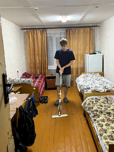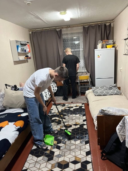 В общежитии №2 прошёл очередной единый санитарный день. В этот день, как и каждый четверг, учащиеся проводят генеральную уборку своих комнат, вытирают пыль, перебирают продукты в холодильнике, наводят порядок в шкафах и моют пол в комнате, отодвигая всю мебель от стен.