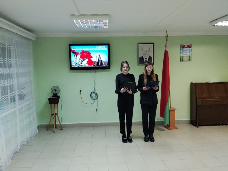 В холле общежития был оформлен информационный стенд. Ведущие познакомили учащихся с хроникой Афганской войны: причинами войны, целями войны, её участниками, этапами войны. Затем был показан видеофильм об одном из эпизодов этой войны: о боях у высоты 3234 с участием 9-ой роты 345-го отдельного парашютно-десантного полка. Ребята узнали о Герое Советского Союза Мельникове Андрее Александровиче, белорусе, уроженце Могилёва, который служил в 9-ой роте. Он погиб в этом бою.