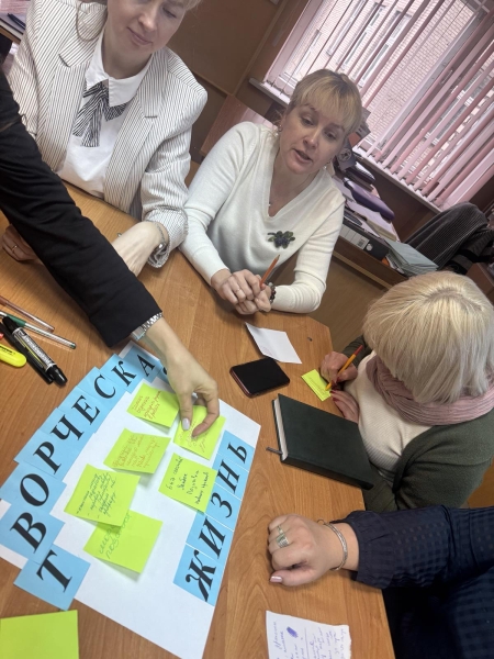 01.04.2025 года среди педагогов состоялся круглый стол с элементами тренинга «Психология на уроках русского языка и литературы», организованный педагогом-психологом Н.В. Ребенковой. Цель мероприятия заключалась в развитии способности участников находить новые решения задач; в налаживании коммуникативных связей внутри группы; в формировании навыков и умений управления творческим процессом и активизации мозговой деятельности. В ходе мероприятия для участников была обеспечена психологическая разгрузка, а в качестве рефлексии участниками был сформирован перечень рекомендаций, которые позволят «сделать креативной и разнообразной собственную жизнь».