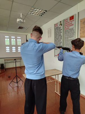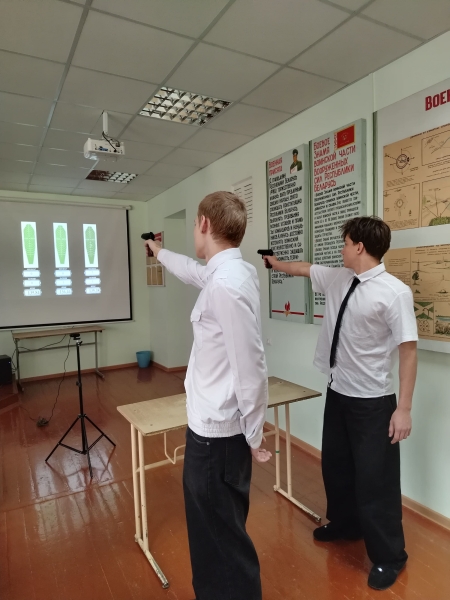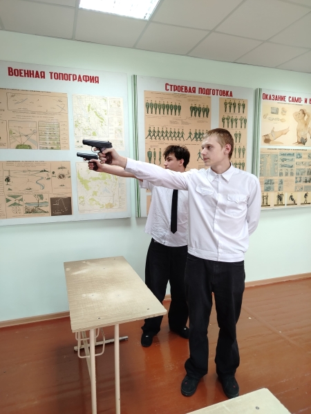 — оружейные макеты: они максимально точно имитируют внешний вид настоящего оружия (в комплект входит автомат АК-74, две винтовки МР-512 и два пистолета ПМ). Вместо боевых патронов используется лазерный модуль, который обеспечивает полную безопасность для учащихся;