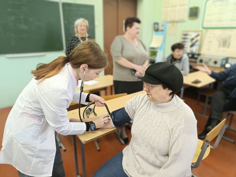 Медицинские работники ГУЗ «Гомельская городская клиническая поликлиника №4» провели медосмотр коллектива: собрали анамнез, измерили температуру, провели физикальный осмотр.