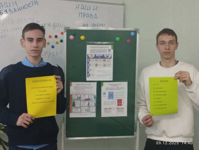09 декабря 2025 года в рамках декады правовых знаний в колледже прошли тематические кураторские часы в группах: И-11, И-31, П-21, А-21, А-41, П-31, Д-11, Д-12, Э-11,Э-12, Т-41, П-11, А-11, Р-31, Э-41, направленные на профилактику противоправных действий. в молодёжной среде.