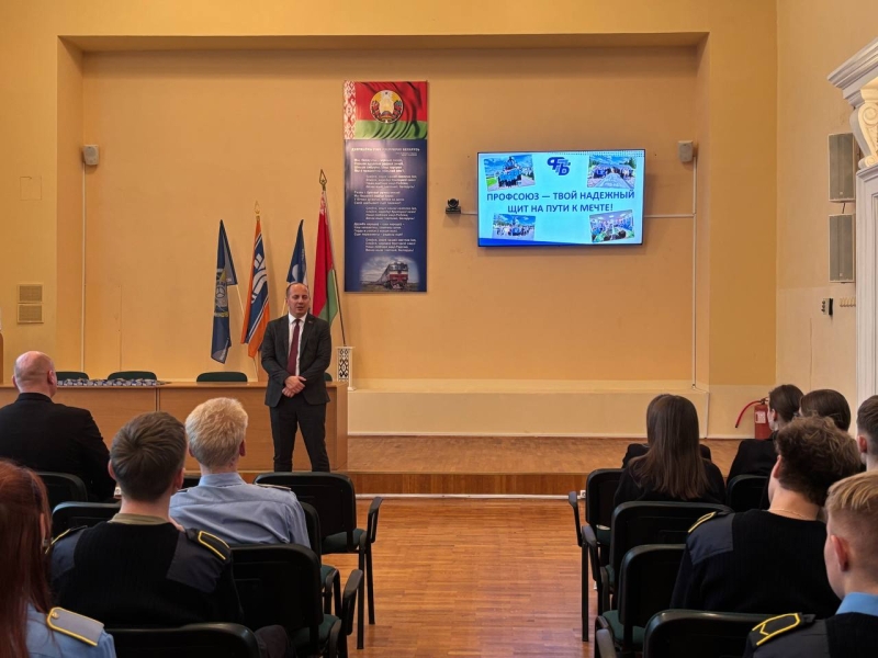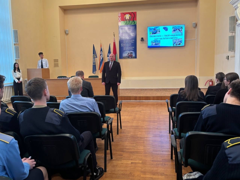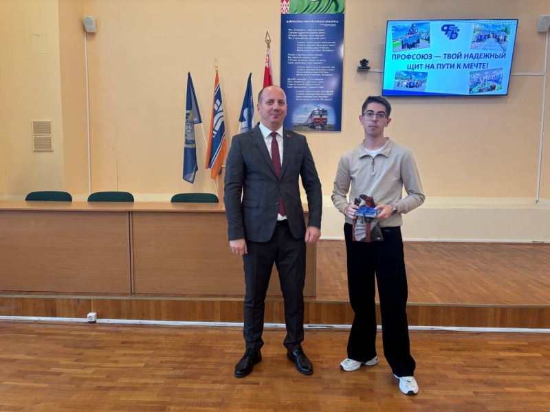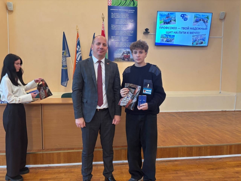 - Молочко Дмитрий Алексеевич, председатель Районной профсоюзной организации РУП «Гомельское отделение Белорусской железной дороги». Дмитрий Алексеевич не только произнёс вдохновляющие напутственные слова новым членам профсоюза, но и лично вручил профсоюзные билеты профоргам групп нового набора. Особой радостью стало вручение подарка от первичной профсоюзной организации колледжа всем профоргам— этот жест подчеркнул внимание к каждому участнику профсоюзного движения.