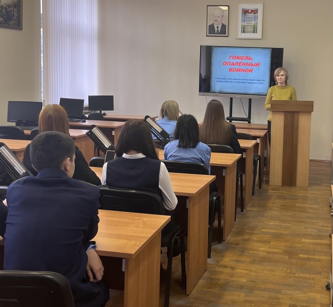 Накануне этой знаменательной даты в библиотеке колледжа состоялся урок мужества «Гомель, опаленный войной». В ходе мероприятия, учащиеся группы Д-11 узнали о битве за Гомель, с которой началось освобождение Белоруссии, о выдающемся подвиге советской армии и народных мстителей в нелёгкой борьбе с немецко-фашистскими захватчиками, о героях минувшей войны, их мужестве и стойкости.