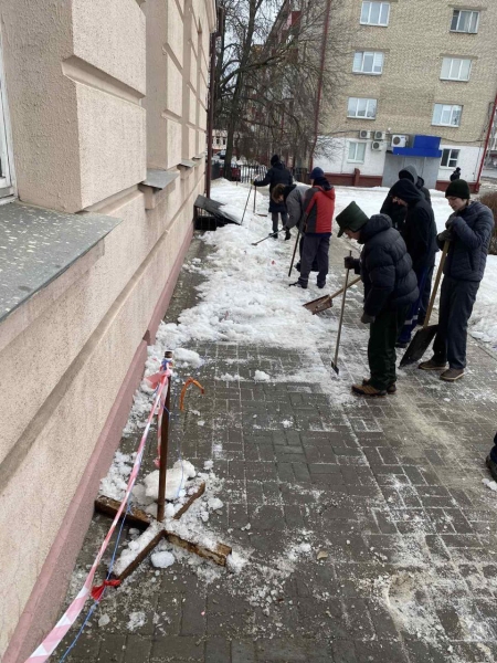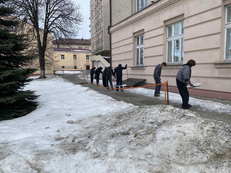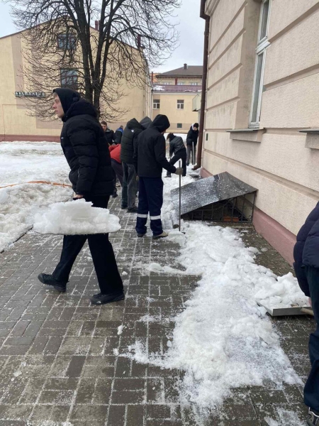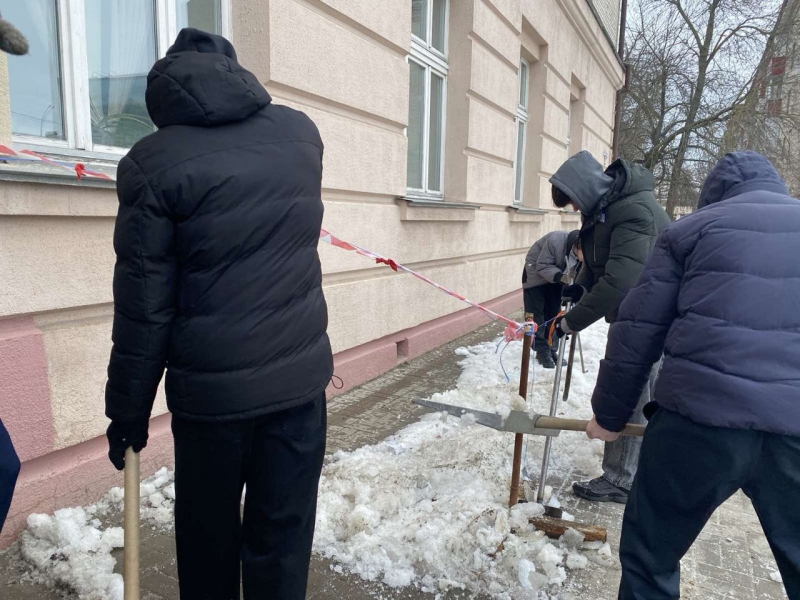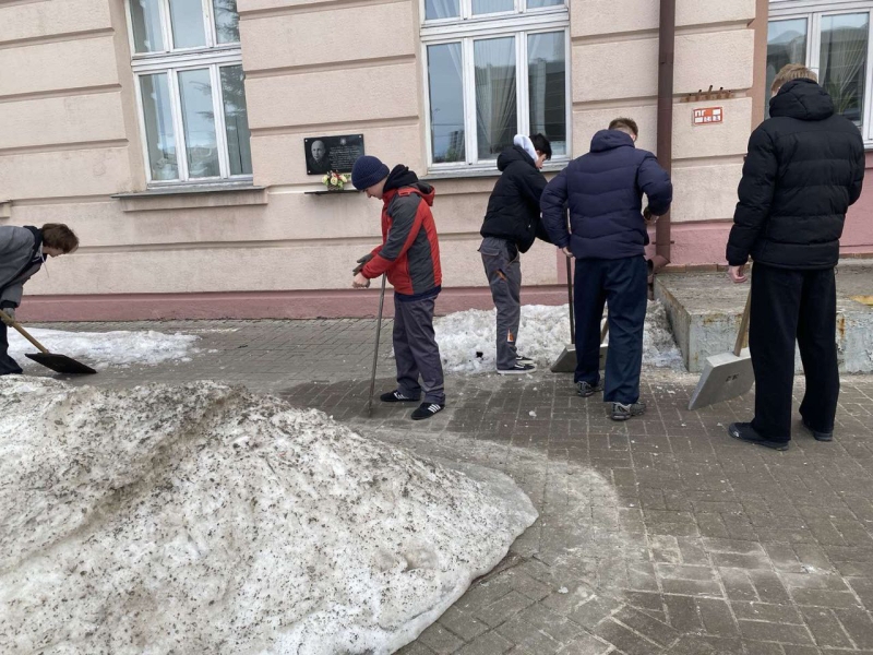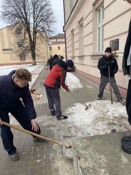 05 марта 2026 года в колледже традиционно проходит акция «Чистый четверг», учащиеся убирают снег и лёд. — Гомельский колледж-филиал УО БелГУТа