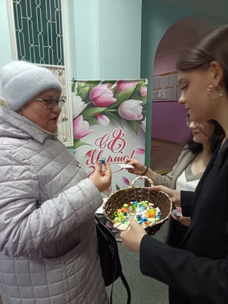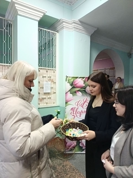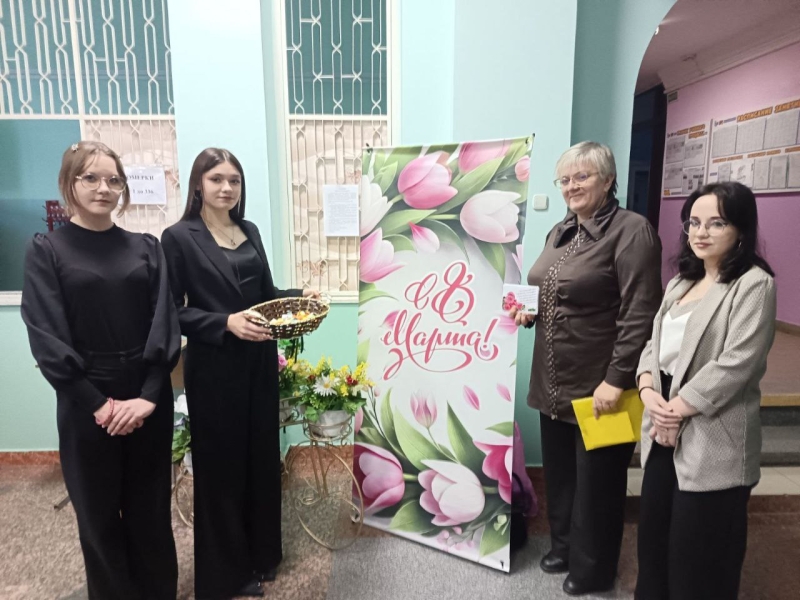 06 марта 2026 года профсоюзом работников колледжа под руководством председателя профсоюзного комитета Теленченко Светланы Викторовны и Молодежным советом колледжа под руководством педагога-организатора Толкачевой Кристины Викторовны на входной группе колледжа проведена акция «Прекрасным женщинам поздравления и пожелания!»