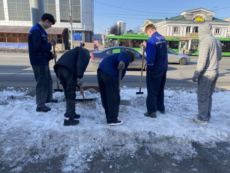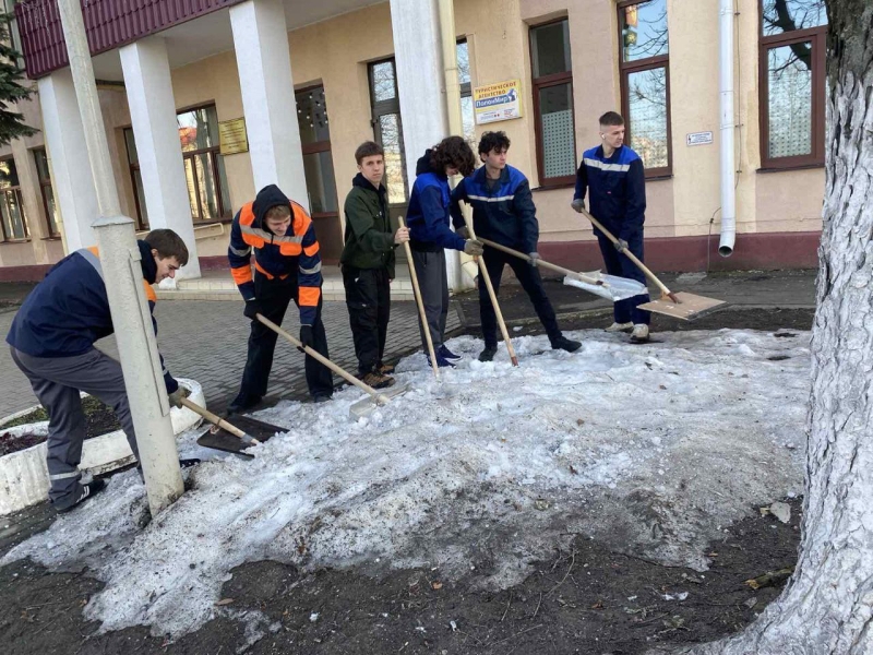12 марта 2026 года в колледже традиционно проходит акция «Чистый четверг», учащиеся убирают снег.