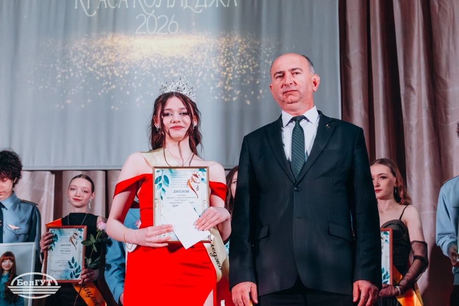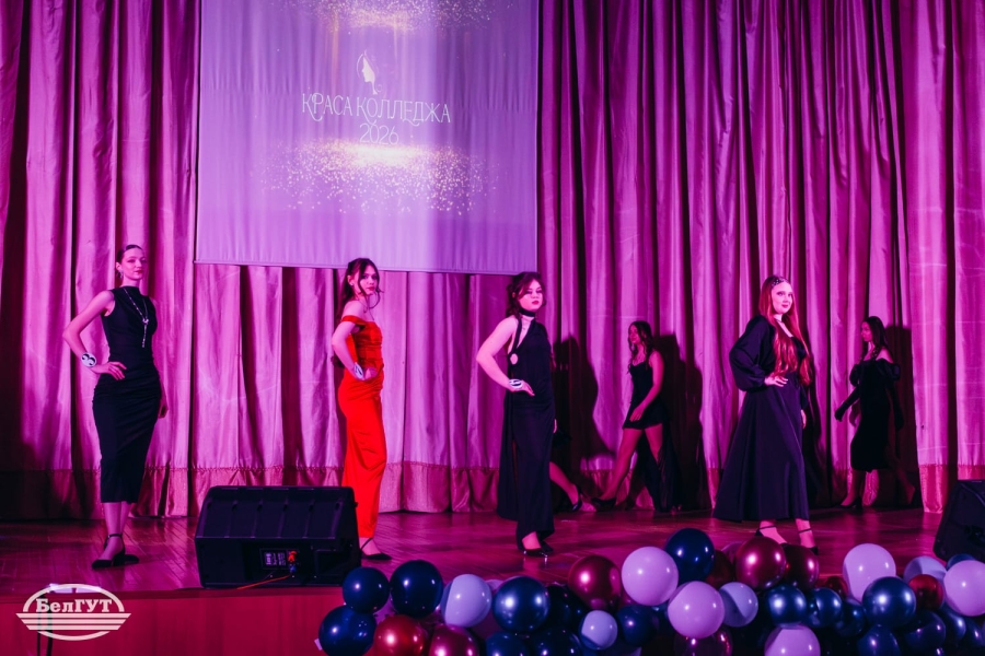 8 ярких и харизматичных учащихся боролись за корону победительницы в конкурсах творческой направленности, декоративно-прикладного мастерства, создании креативных видео и умении дефилировать на сцене. Группы поддержки также помогали конкурсанткам заработать дополнительные баллы, выражая симпатию с помощью разноплановых номеров. Болельщики искренне и восторженно поддерживали девушек на протяжении полутора часов, создав в зале невероятную атмосферу! По итогам совещания жюри каждая участница была удостоена номинации и получила цветы, а также подарки от профсоюзного комитета учащихся и администрации колледжа подарки. Путем голосования зала была выбрана «Мисс зрительских симпатий» -Кветковская Елизавета из группы Р-31, которая также стала «Вице-мисс». А абсолютной победительницей, удостоенной титула «Краса колледжа 2026» заслуженно стала Левицкая Сабина (группа Д-11).