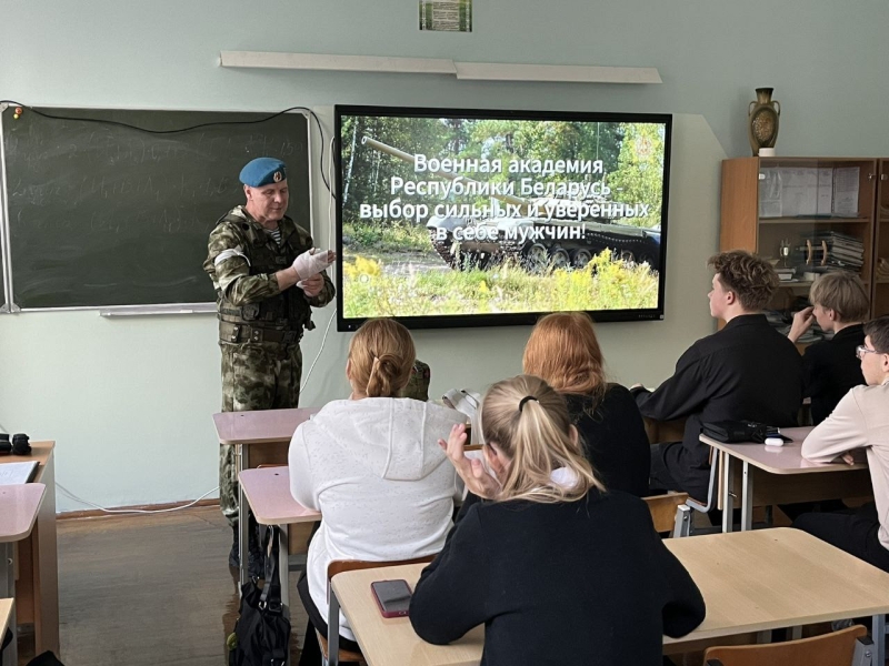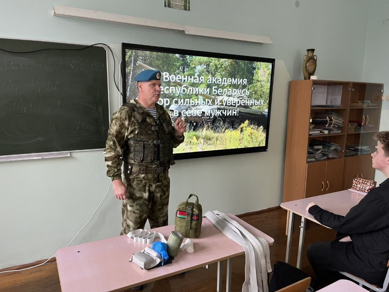 18 ноября 2025 года в Гомельском колледже – филиале учреждения образования «Белорусский государственный университет транспорта» прошла встреча ведущего специалиста Гомельского областного военного комиссариата, полковника милиции в запасе Бухавцова Владимира Васильевича с учащимися группы И-11 колледжа. Проведено практическое занятие по оказанию первой медицинской помощи.