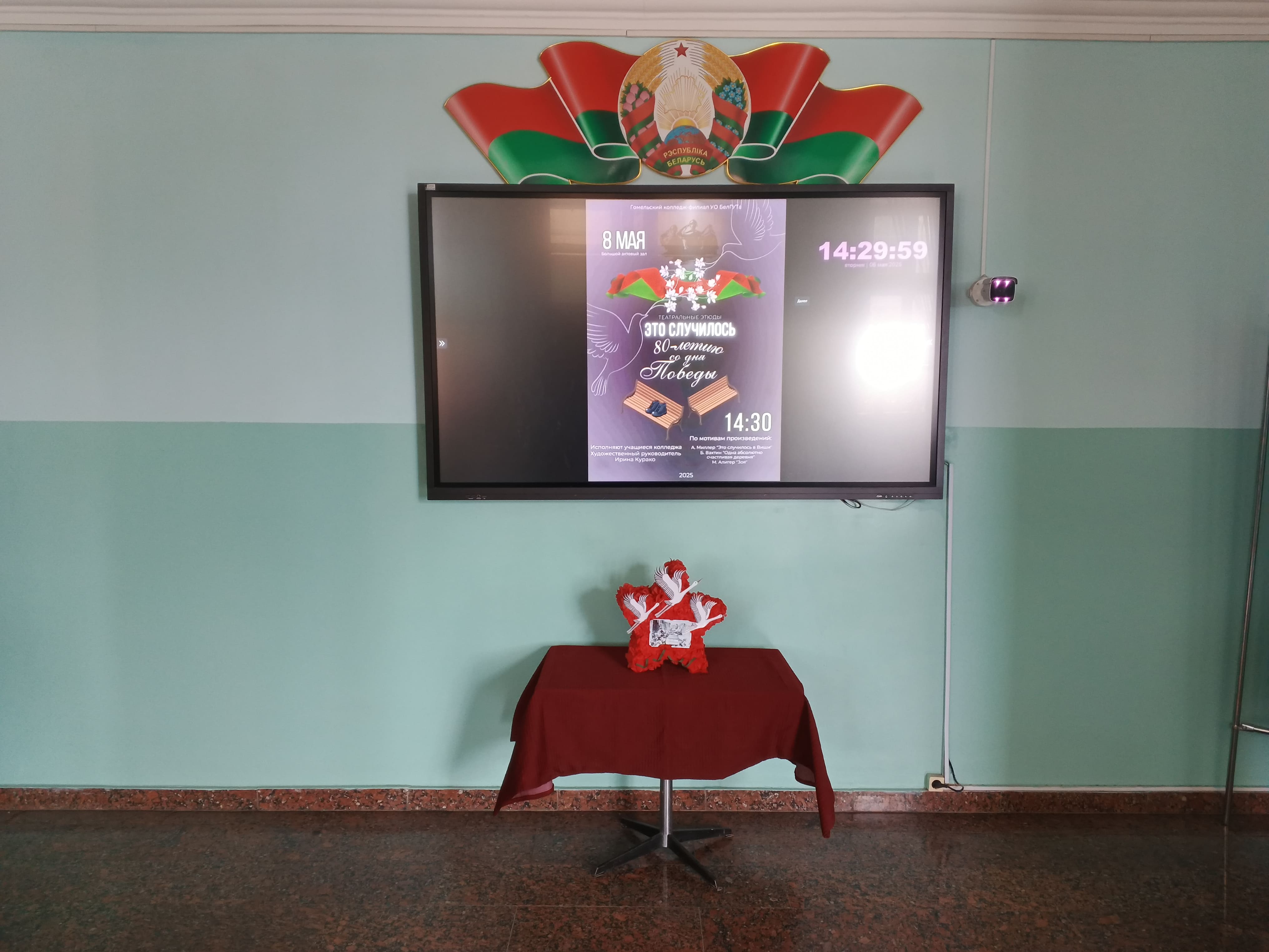 06.05.2025 года в фойе 1 этажа главного корпуса выставлена инсталляция к 80-летию со Дня Победы сделанная руками учащихся группы И-11 Грицук Ксении и Климовцовой Ульяны.…
