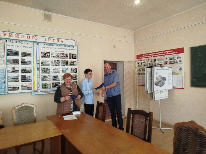 23.09.2025 в Гомельском вагонном депо состоялось вручение зачетных книжек учащимся группы П-11 специальности «Техническая эксплуатация и ремонт подвижного состава железнодорожного транспорта»