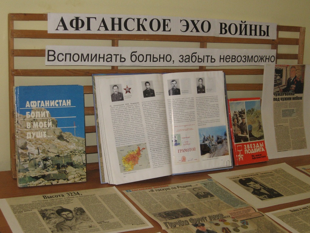 «Афганское  эхо….» — выставка к 15 февраля — Дню вывода войск из Афганистана;  Дню памяти воинов-интернационалистов.