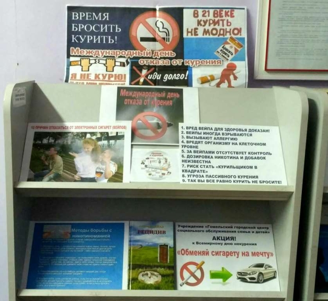 Выставка организована Гомельским городским центром социального обслуживания семьи и детей «Без табака прекрасна жизнь! От сигареты откажись!»