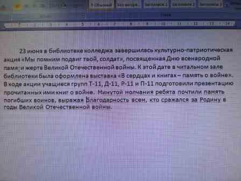 26 ноября Гомельщина отмечает 78-ю годовщину освобождения от немецко-фашистских захватчиков. 23 ноября в библиотеке колледжа состоялся урок-размышление «Наши земляки – участники войны», посвященный памяти защитников Гомеля в годы Великой Отечественной войны. На мероприятии присутствовали учащиеся группы Д-41.